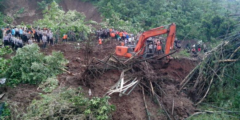 Sebelumnya diberitakan, longsor yang terjadi Selasa dini hari tadi menyebabkan 5 rumah tertimbun tanah. Dari 16 korban, 2 orang ditemukan selamat, 7 meninggal, serta 7 lainnya diduga masih tertimbun longsor.